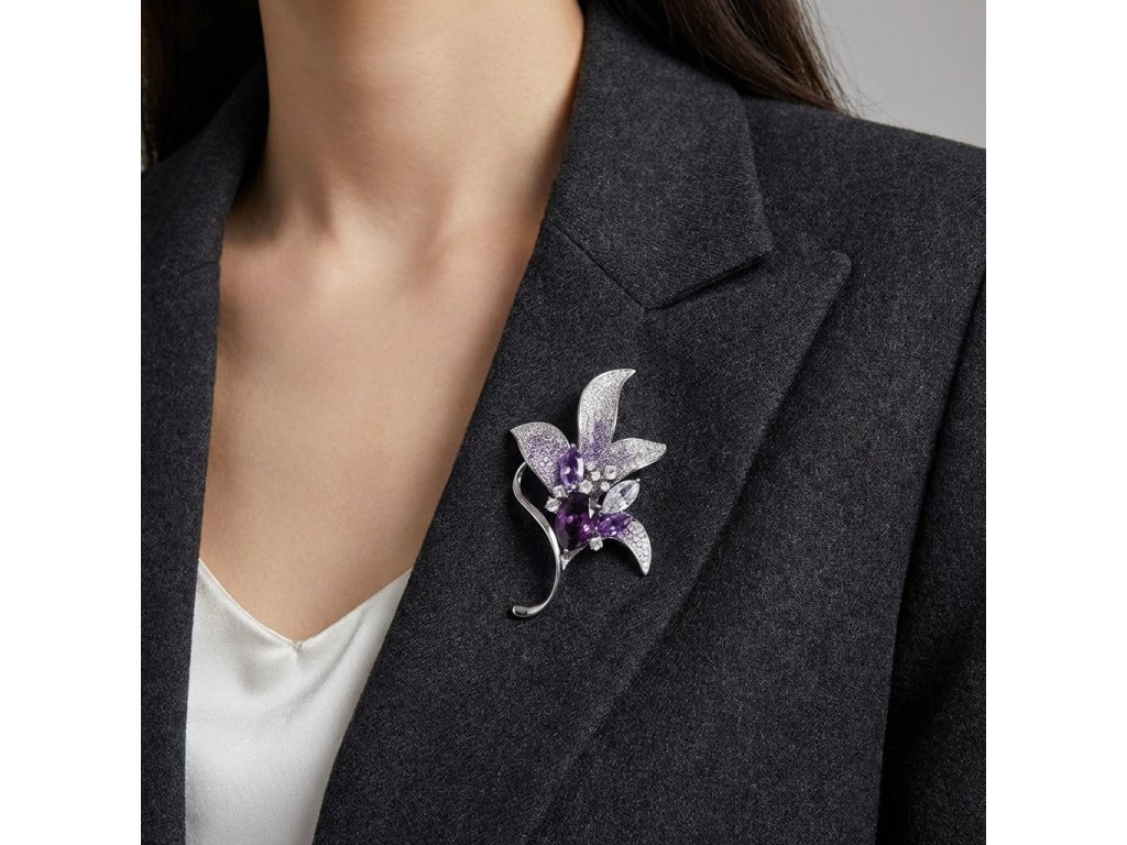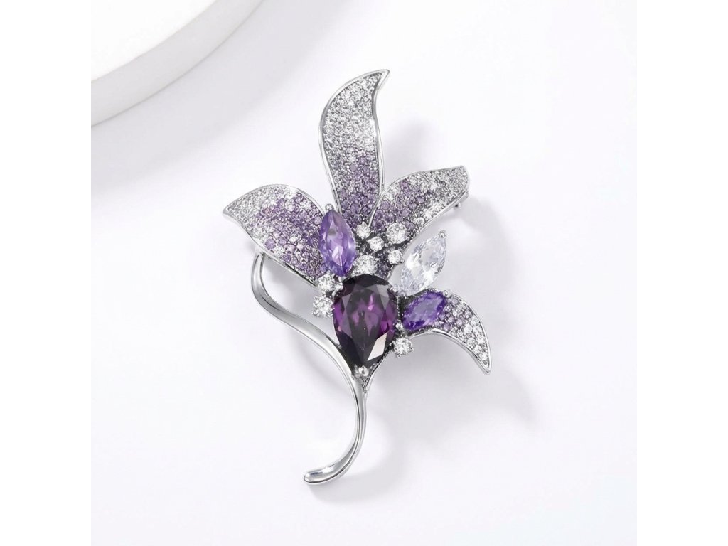 Brošňa Magnolia s brúsenými kryštálmi – fialová