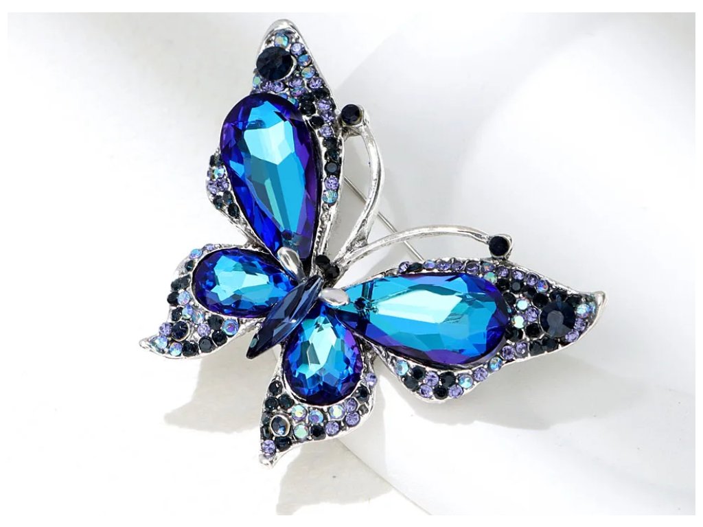 Brošňa s modrými kryštálmi Motýľ