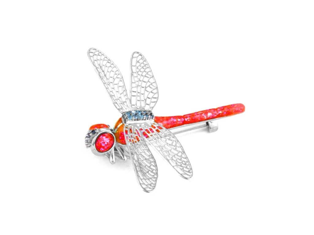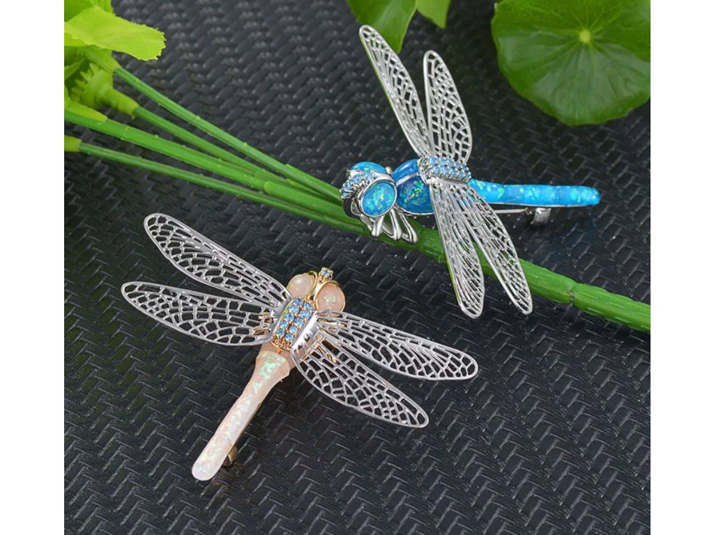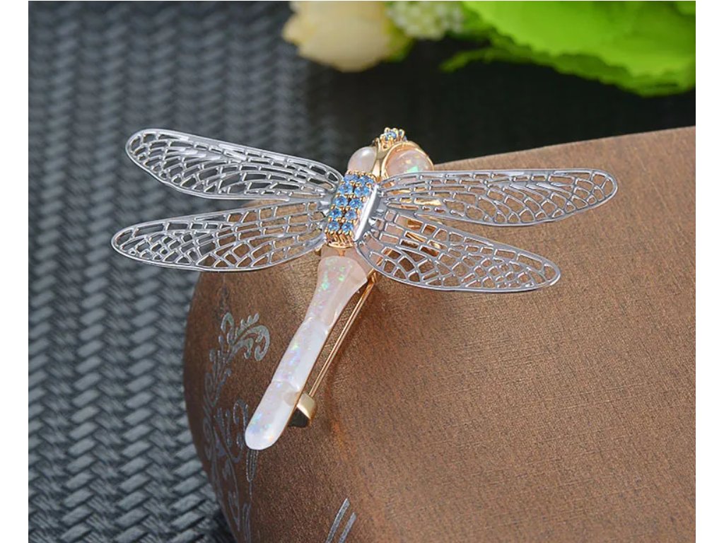 Táto kvalitná postriebrená brošňa v podobe vážky je dokonalým spojením elegancie a jemného dizajnu. Brošňa je vyrobená so starostlivosťou a precíznosťou, čo z nej robí výnimočný šperk pre každú príležitosť. Centrálny prvok brošne tvorí syntetický opál, ktorý pridáva do dizajnu nádherný hrejivý odlesk a farbu. Tento opál je starostlivo spracovaný a umiestnený do tvaru vážky, čo zvyšuje unikátnosť a vizuálnu príťažlivosť šperku. Okolo opálu sú osadené AAA zirkóny, ktoré dodávajú brošni jemný a elegantný lesk, zároveň vytvárajú dojem kvality a luxusu.
