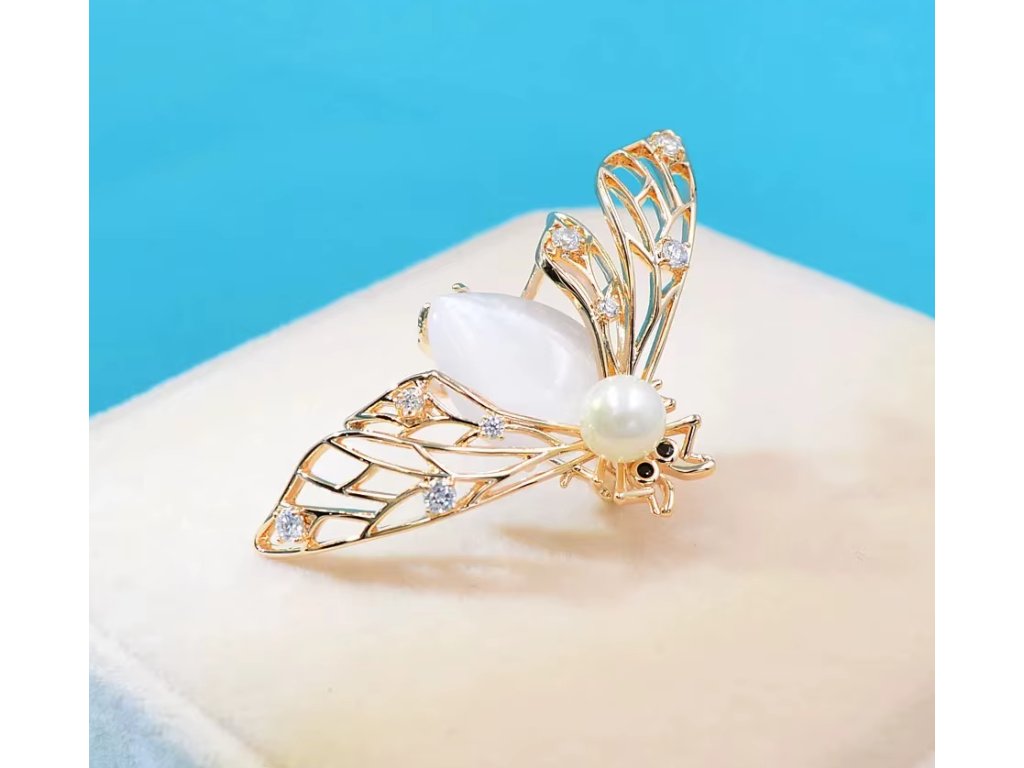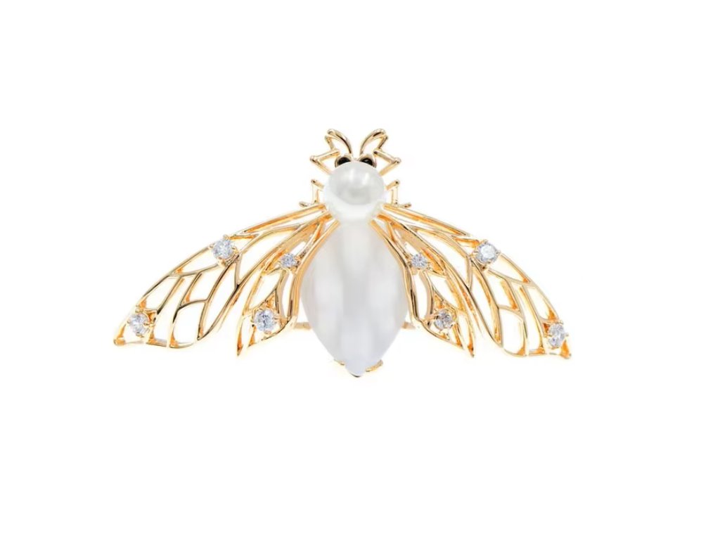 Pozlacená brož ve tvaru včelky s opálem, perlou a krystaly