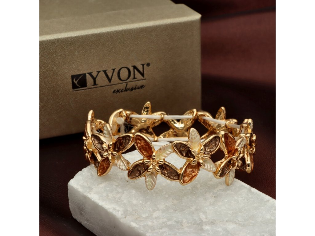 Elastický náramok YVON v kvetinovom dizajne a zlatej farbe