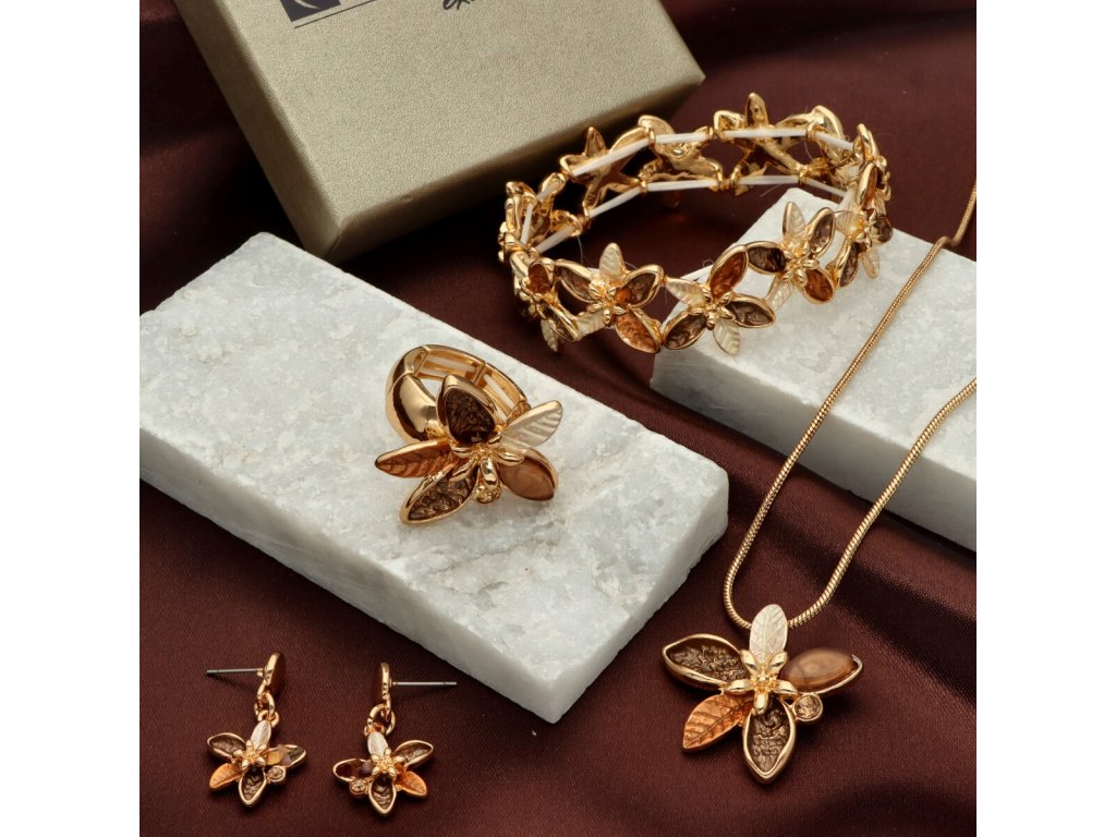 Náramok YVON zaujme nežnými tvarmi kvetov, ktoré pôsobia ako drobné lupienky zachytené v jarnom vánku. Kombinácia zlatého odtieňa kovu a smaltovaných detailov v prírodných farbách vytvára decentný, no veľmi osobitý vzhľad, ktorý dokáže rozžiariť každodenný aj slávnostnejší outfit.