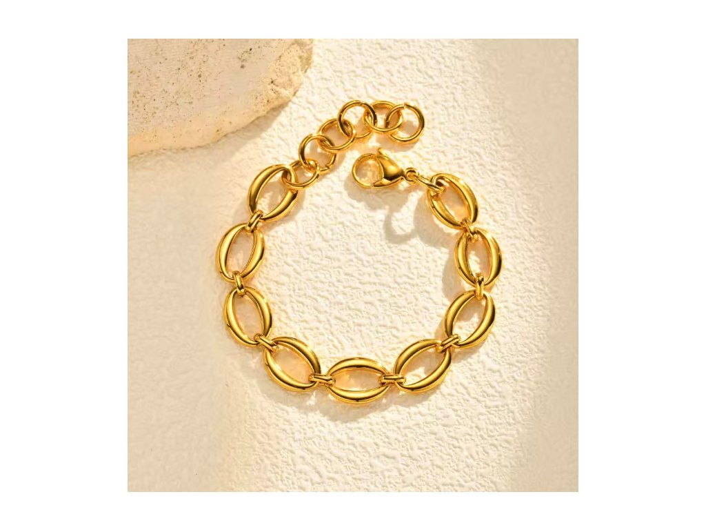 Tento dámský náramek z nerezové oceli nabízí moderní a výrazný design díky velkým oválným okům. Pozlacené provedení dodává náramku luxusní lesk a elegantní vzhled. Díky pevnému materiálu je šperk odolný a vhodný pro každodenní nošení i slavnostní příležitosti, kdy chcete vyniknout stylovým doplňkem.