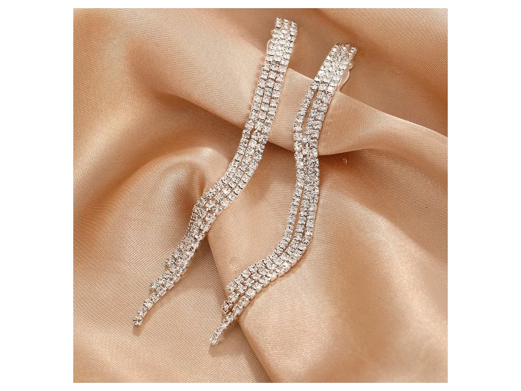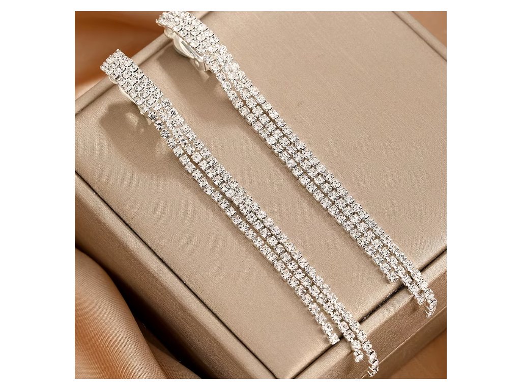 Elegantné dlhé klipsové náušnice s kryštálmi – strieborné