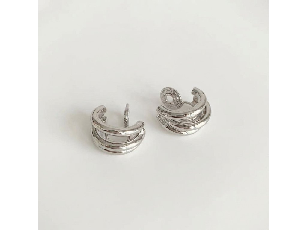 Módne trojité kruhové klipsové náušnice v striebornej farbe