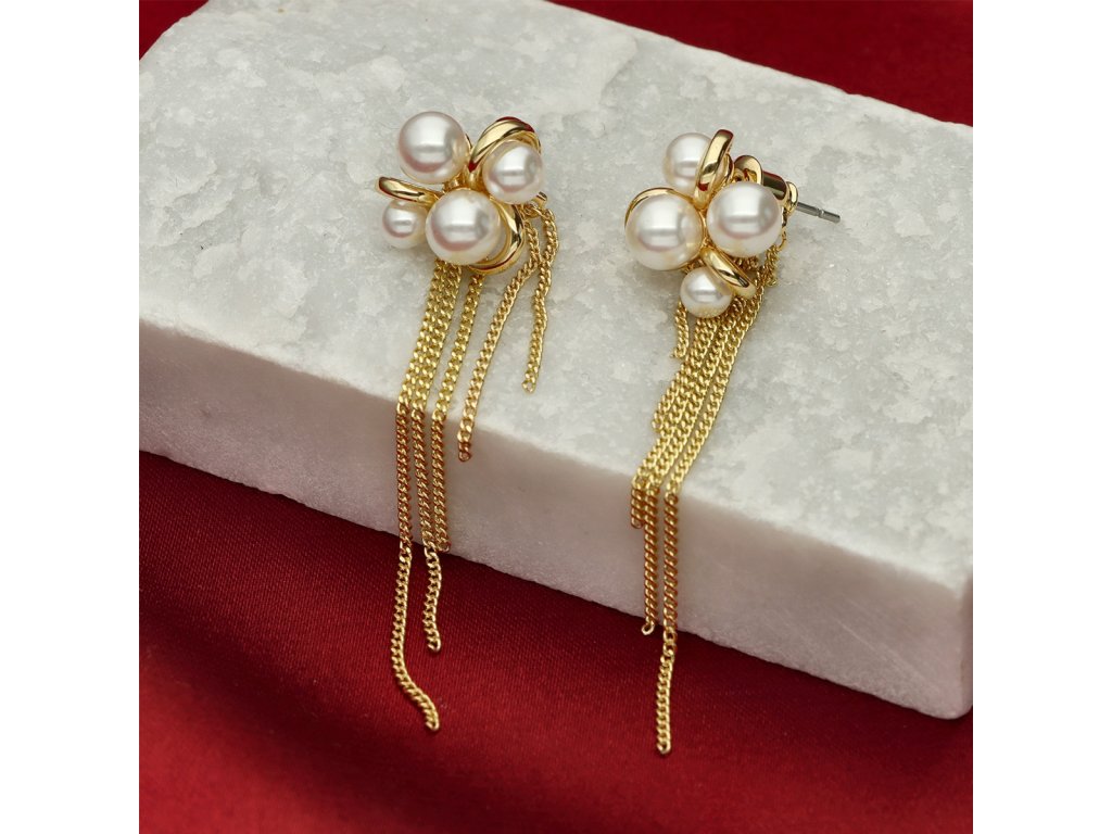 Pohyb, lehkost a jemný lesk se v těchto náušnicích potkávají v dokonale vyvážené podobě. Kombinace perel a tenkých řetízků vytváří efekt, který se s každým krokem nenápadně mění a přitahuje pozornost přirozeným způsobem. Náušnice působí slavnostně, ale zároveň si zachovávají lehkost, díky níž nejsou vyhrazené jen pro výjimečné večery.