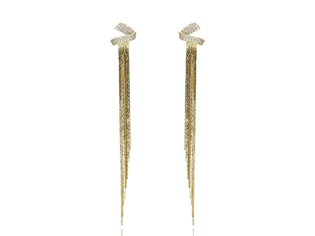 Náušnice YVON pracují s kontrastem jemného lesku a volného pohybu. Horní část zdobená kubickou zirkonií přitahuje pozornost čistým světelným bodem, ze kterého splývají dlouhé řetízky vytvářející elegantní vertikálu. Celek působí vzdušně, ale zároveň výrazně – ideální pro chvíle, kdy chcete šperkem podtrhnout osobnost bez zbytečné okázalosti.