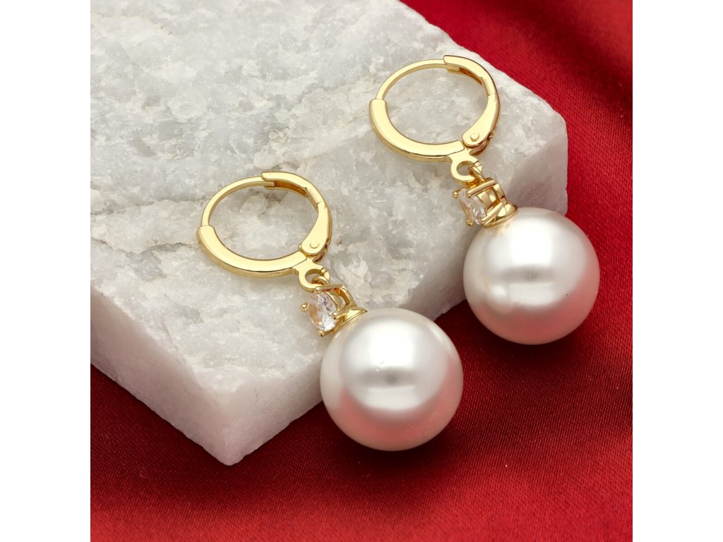 Nadčasové náušnice s perlou shell a trblietkou kubickej zirkónie