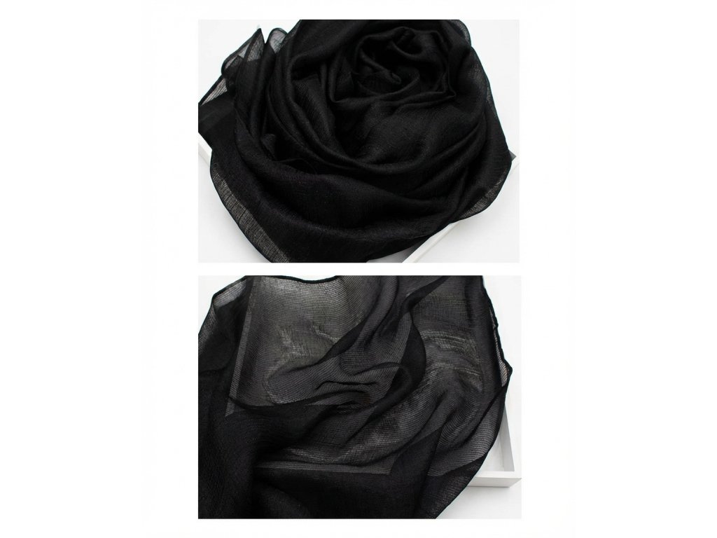 Vďaka multifunkčnému použitiu je ideálny na každodenné nosenie, cestovanie, pláž, ale aj ako jemný doplnok k šatám alebo kabátu. Čierna farba dodáva šálu sofistikovaný a univerzálny vzhľad, ktorý nikdy nevyjde z módy.