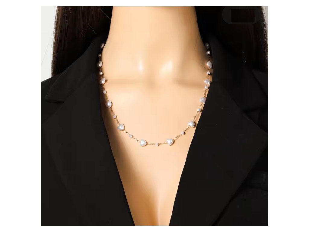Táto elegantná súprava spája klasickú krásu perál s jemným nádychom romantiky. Náhrdelník aj náramok sú zdobené pravidelne sa striedajúcimi bielymi perlami a perlovými srdiečkami, ktoré symbolizujú nehu a lásku. Lesklé pozlátenie nehrdzavejúcej ocele dodáva šperkom luxusný vzhľad a zároveň zaručuje ich dlhú životnosť. Súprava je ideálna pre ženy, ktoré milujú nadčasovú eleganciu a hľadajú doplnok vhodný na každú príležitosť.