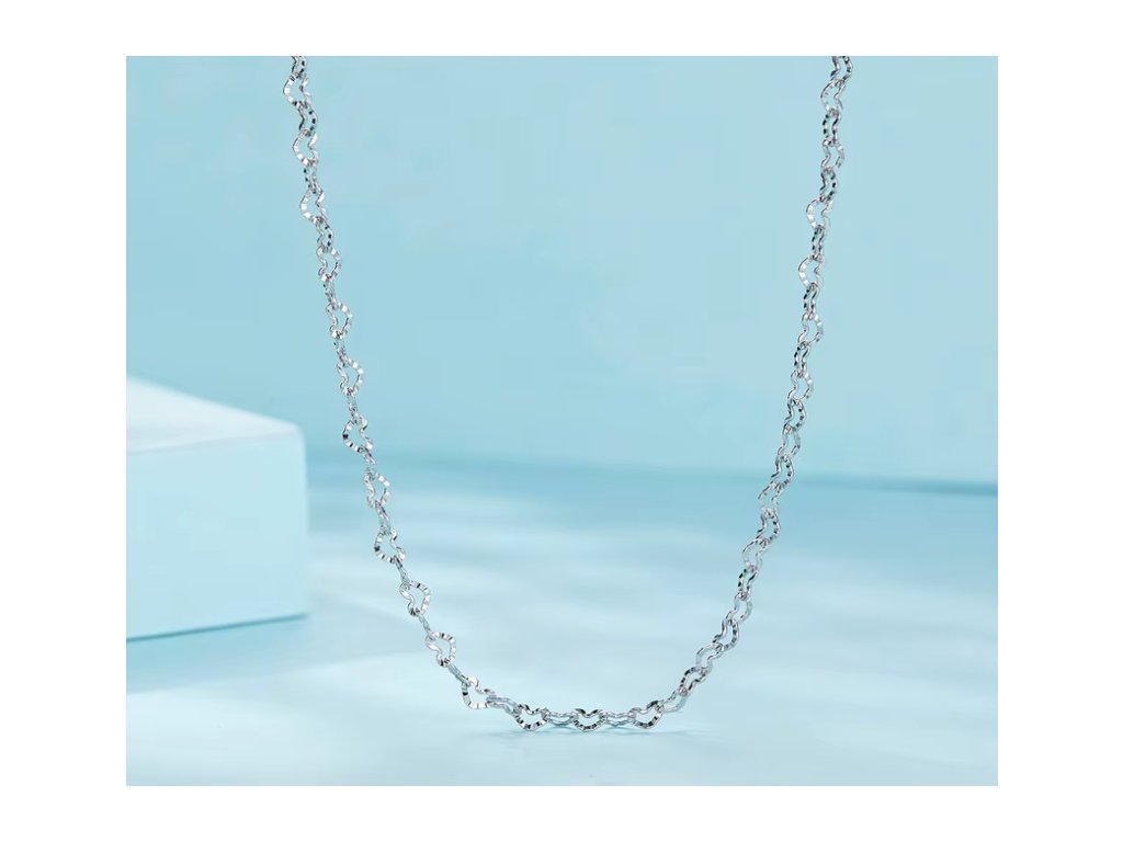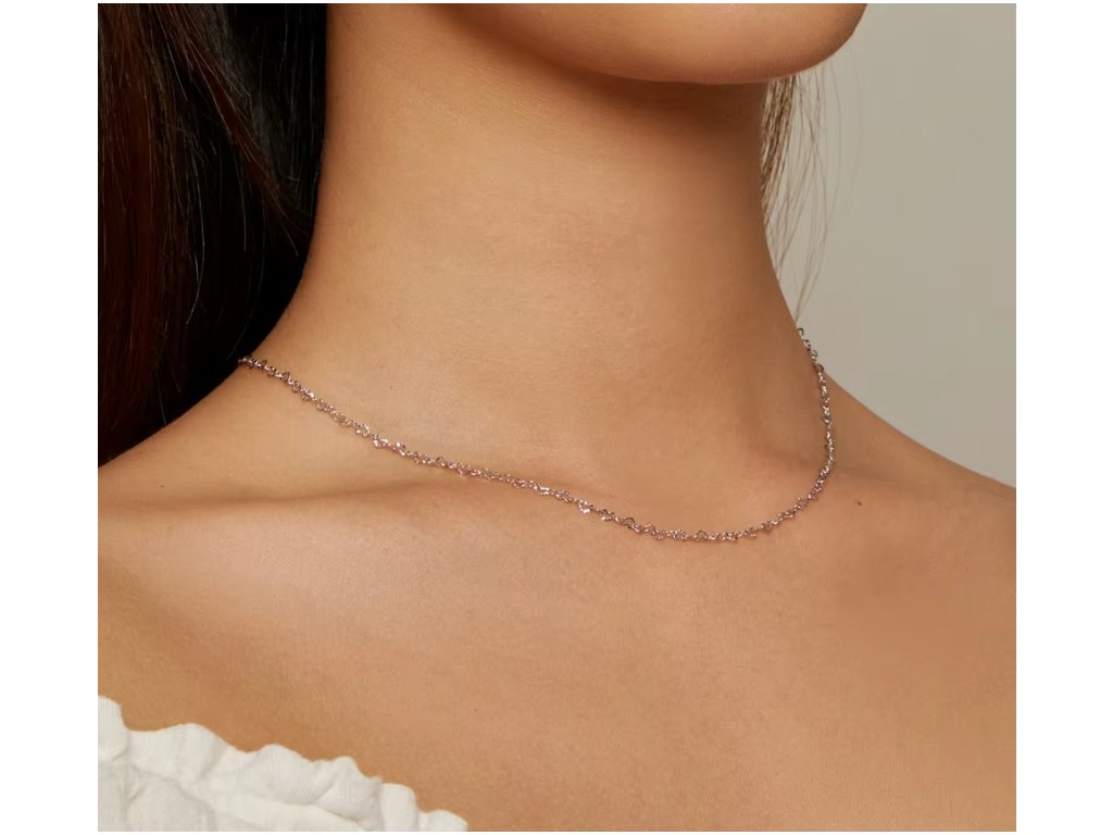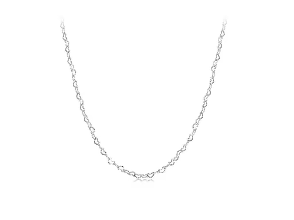 Tento náhrdelník ze stříbra 925 zaujme jemným a něžným designem se srdíčkovými očky po celé délce řetízku. Každé srdíčko je precizně vypracované, což dodává šperku elegantní a romantický charakter. Náhrdelník je vhodný pro každodenní nošení i slavnostní příležitosti, kde podtrhne ženský a jemný styl.