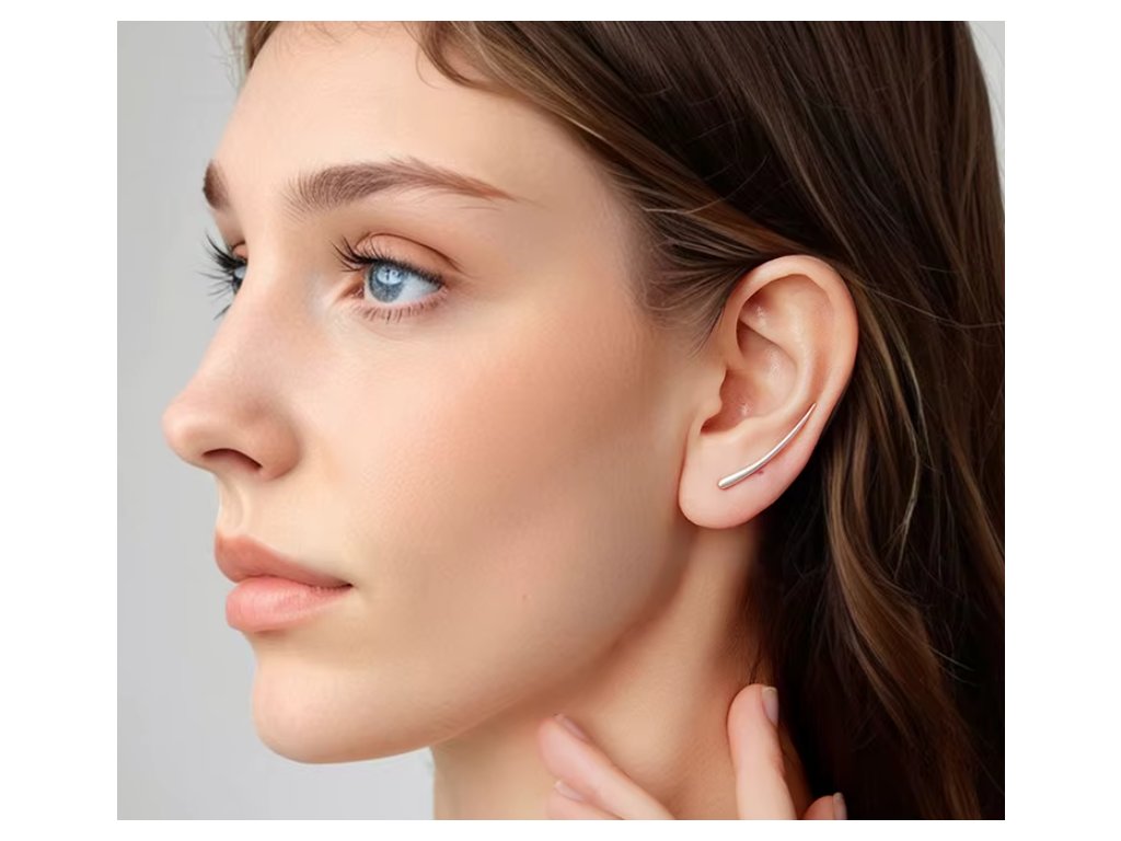 Tyto minimalistické náušnice ze stříbra 925 vynikají čistým a nadčasovým designem. Náušnice se snadno protáhnou ušní dírkou a jejich délka kopíruje tvar lalůčku po celé jeho délce. Protější strana se jemně přimáčkne k uchu, díky čemuž náušnice bezpečně drží bez nutnosti klasického zapínání.