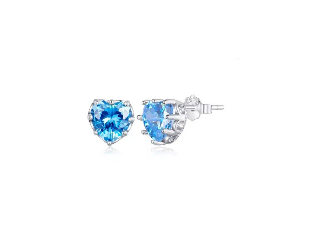Stříbrné náušnice Srdce s barevným zirkonem – Birthstone
