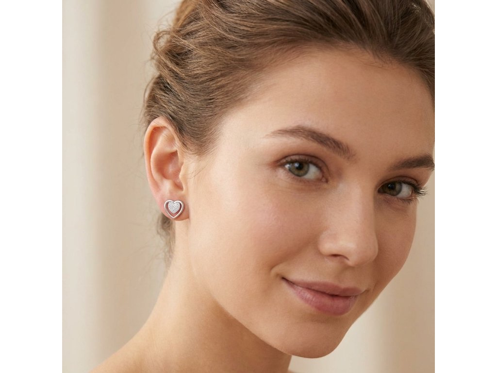 Náušnice s motivem srdce jsou nadčasovým symbolem lásky a náklonnosti, který v tomto provedení získává moderní a elegantní nádech. Design náušnic sází na kontrast jemně leštěného stříbrného lemu a vnitřní plochy hustě vyplněné drobnými zirkony. Tyto kameny jsou broušeny tak, aby maximalizovaly odraz světla, což zajišťuje nepřehlédnutelný lesk při každém pohybu hlavy.