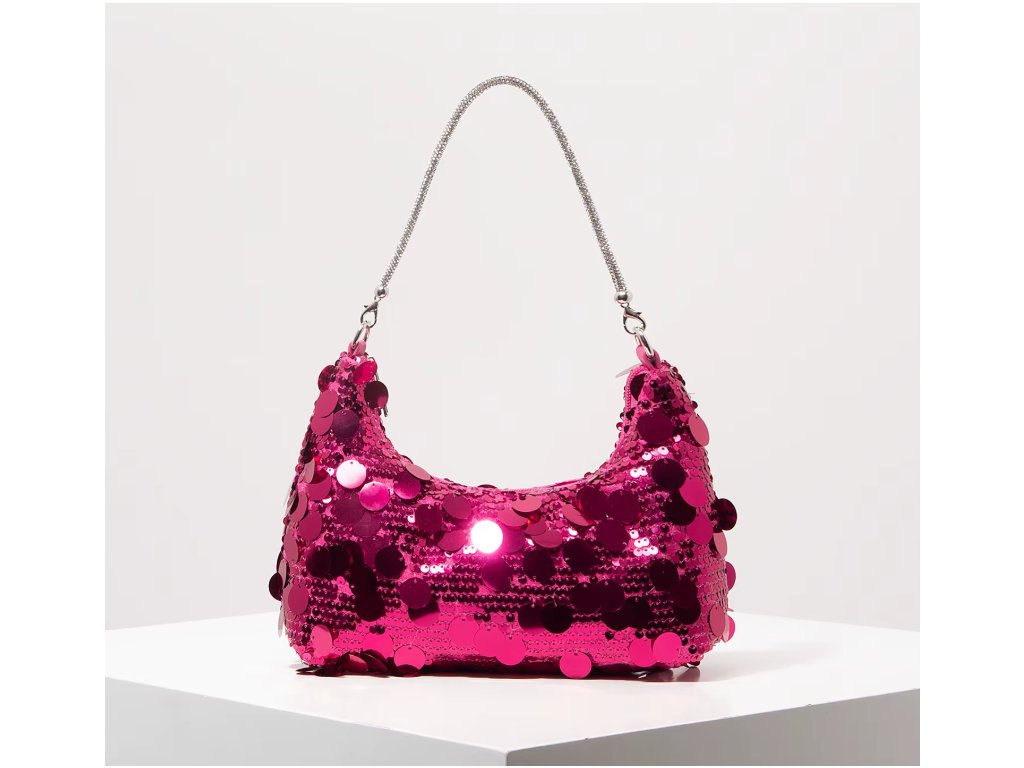 Třpytivá sytě růžová kabelka přes rameno s flitry