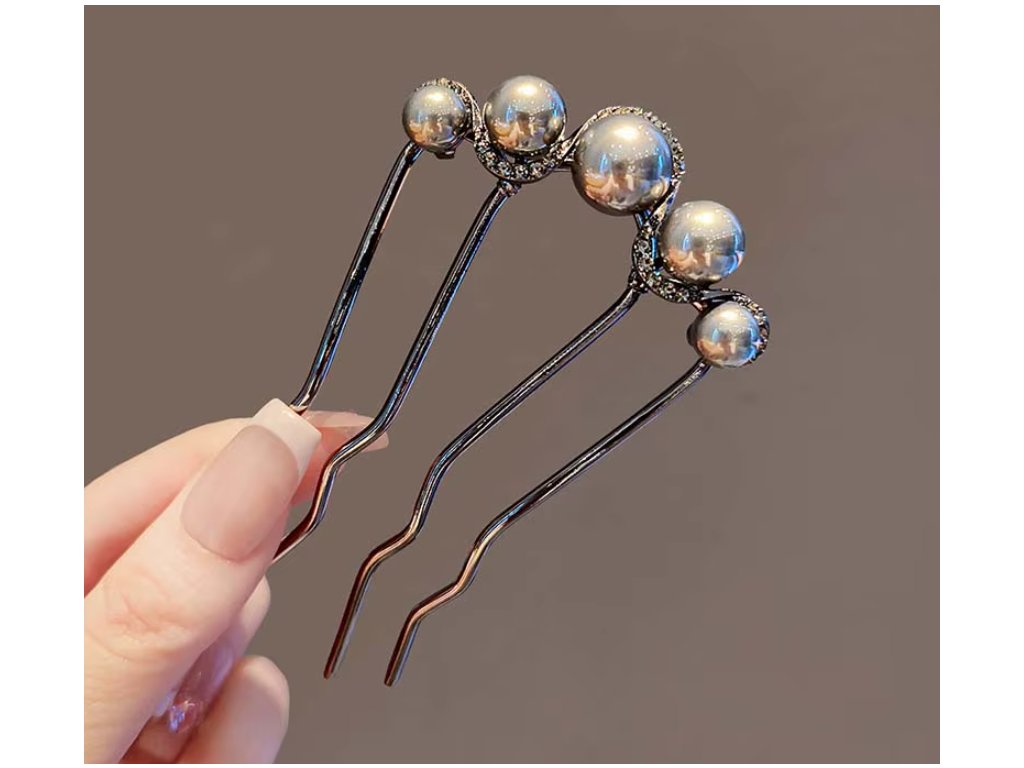 Tento ozdobný hřebínek do vlasů zaujme jemným a nadčasovým designem s perlami zdobícími celý okraj. Zlatá varianta s bílými perlami působí luxusně a slavnostně, zatímco černá varianta se šedými perlami nabízí elegantní a moderní vzhled. Hřebínek je ideálním doplňkem pro společenské účesy, svatby i jiné slavnostní příležitosti.