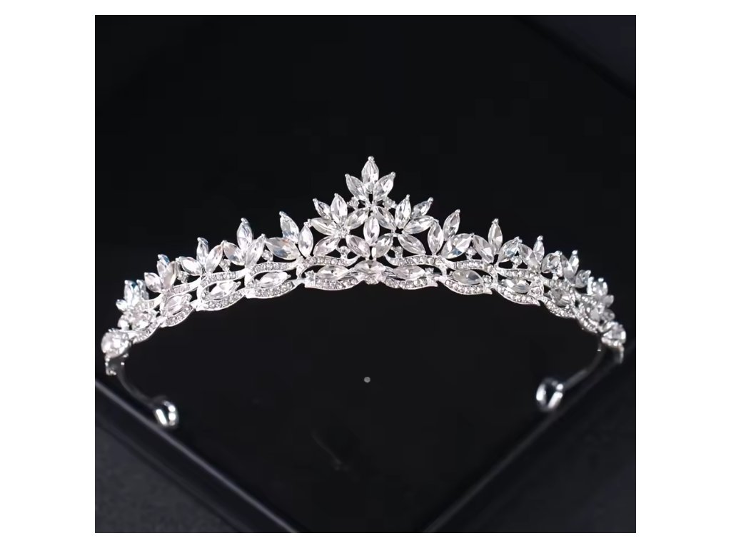 Tato postříbřená korunka do vlasů zaujme jemným, ale luxusním provedením, které podtrhuje třpyt pečlivě zasazených krystalů. Kombinace drobných kulatých krystalů a slzovitých kamenů vytváří elegantní hru světla a dodává korunce slavnostní charakter. Ideální volba pro svatby, plesy, slavnostní události i výjimečné příležitosti, kdy chcete působit opravdu výjimečně.