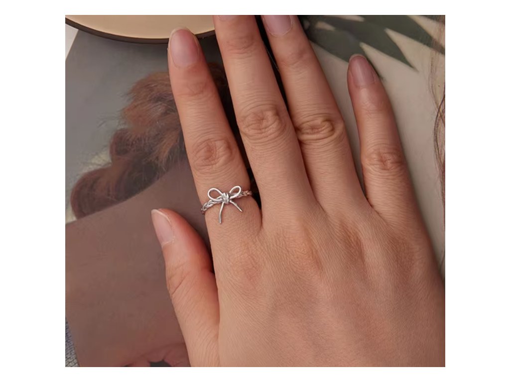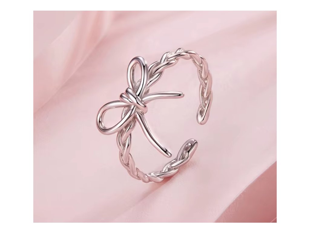 Stříbrný dámský prsten s pleteným designem a mašlí - Stříbro 925