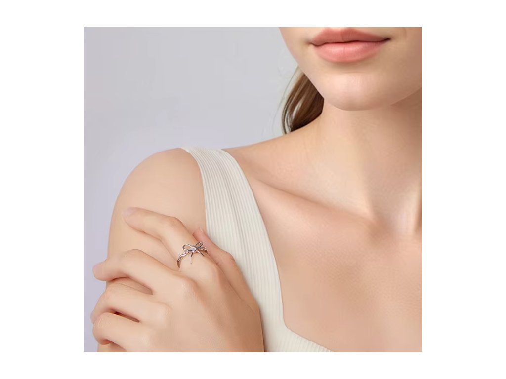 Tento dámský prsten ze stříbra 925 zaujme originálním otevřeným provedením a detailně zpracovaným pleteným designem. Dominantním prvkem je jemná mašle umístěná nahoře uprostřed, která prstenu dodává ženský a romantický nádech. Díky otevřenému tvaru se prsten pohodlně přizpůsobí prstu a je vhodný pro každodenní i slavnostní nošení.