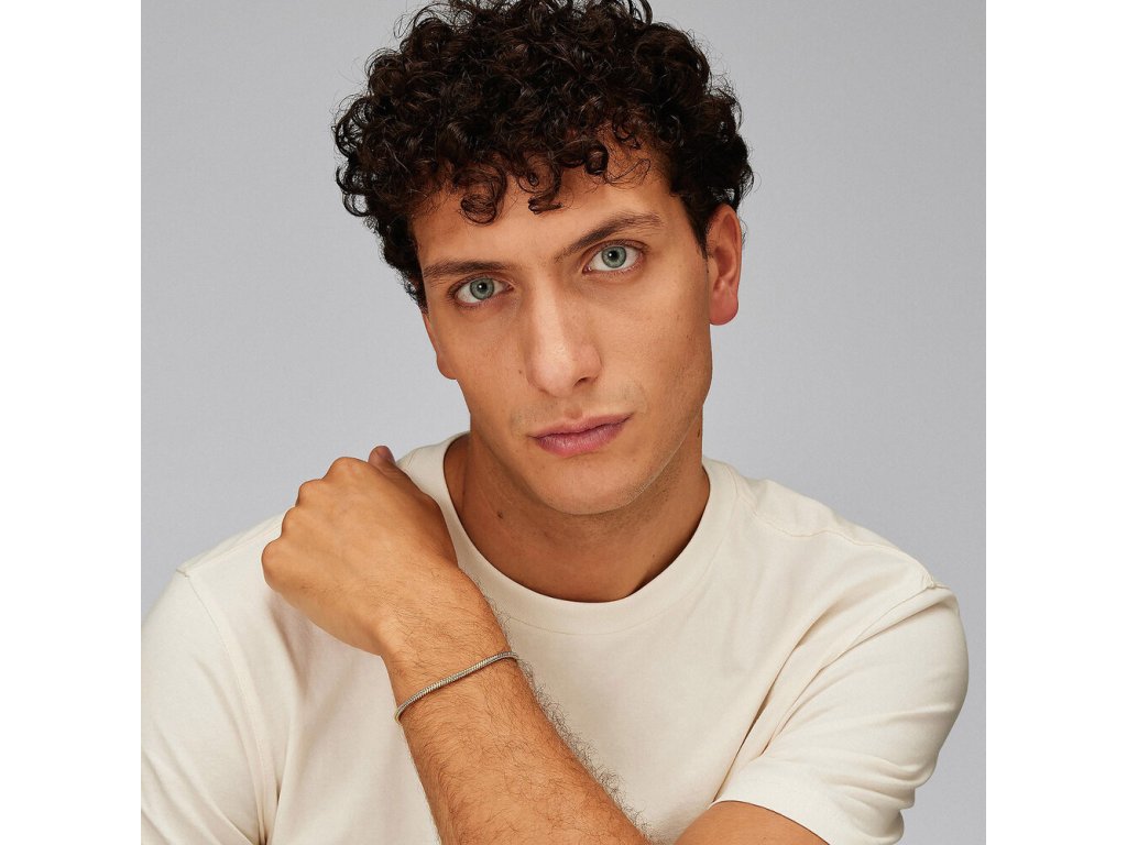 Dominantným prvkom je hladká retiazka typu okrúhly had, ktorá pôsobí veľmi sofistikovane a zaisťuje maximálny komfort pri nosení. Minimalistický dizajn umožňuje jednoduché kombinovanie s hodinkami aj ďalšími doplnkami a hodí sa k ležérnemu aj elegantnejšiemu štýlu.