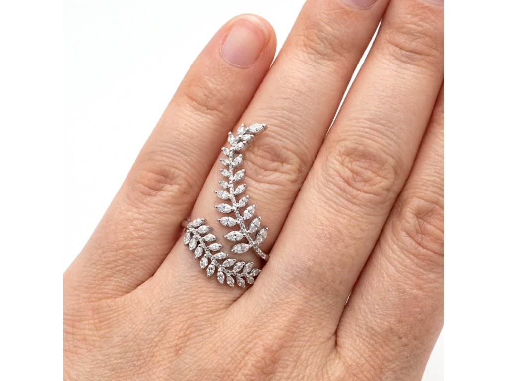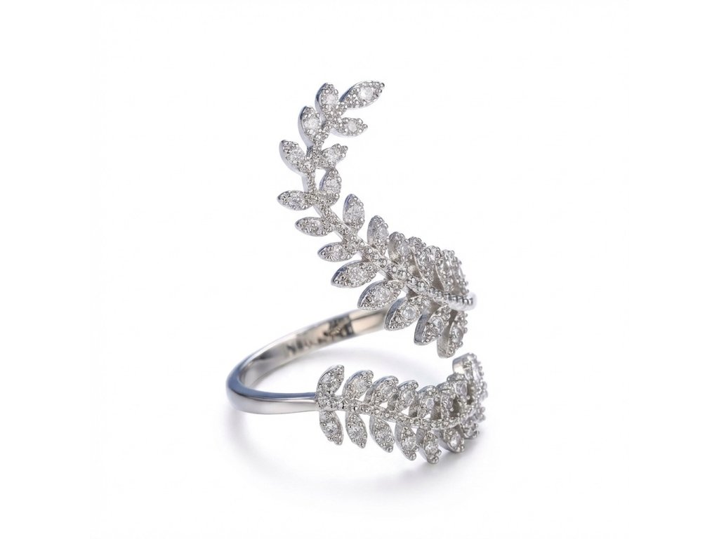 Prsteň predstavuje moderné poňatie klasického motívu listov. Dizajn šperku je navrhnutý tak, aby sa elegantne obtáčal okolo prsta a vytváral efekt nekonečnej špirály. Každý jednotlivý lístok je precízne osadený drobnými zirkónmi, ktoré zachytávajú svetlo z každého uhla a dodávajú doplnku výrazný lesk a trblietanie.