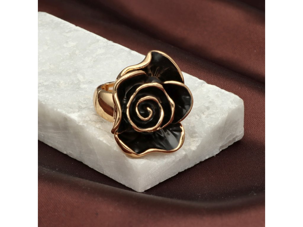 Umělecký prsten YVON ve tvaru černé růže s elastickou obroučkou