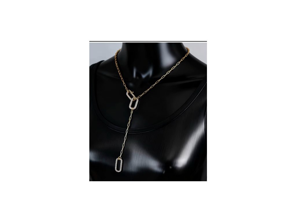 Tento módny náhrdelník so zirkónmi zaujme svojím originálnym dizajnom inšpirovaným tvarom sponky. Jemná retiazka v kombinácii s podlhovastým príveskom vytvára moderný a sofistikovaný vzhľad, ktorý krásne vynikne na jednoduchých šatách aj blúzke.