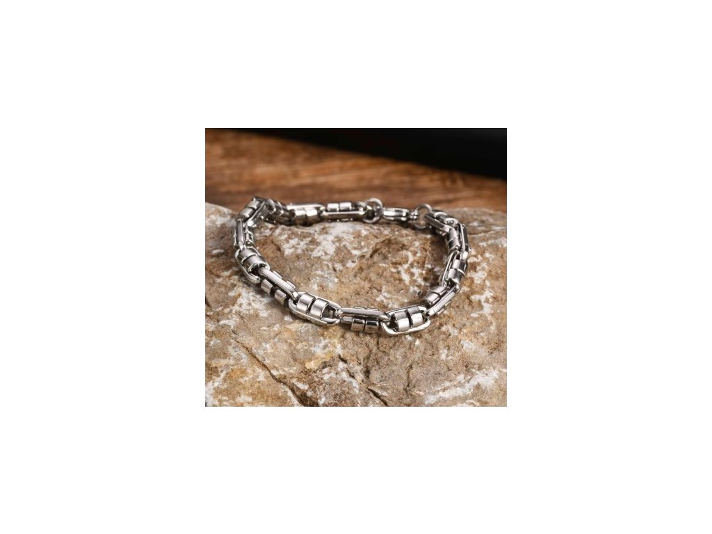 Tento pánský řetízkový náramek z nerezové oceli zaujme svým masivním článkovým designem, který působí sebevědomě a moderně. Kombinace kulatých a podlouhlých článků vytváří výrazný, ale stále elegantní vzhled.