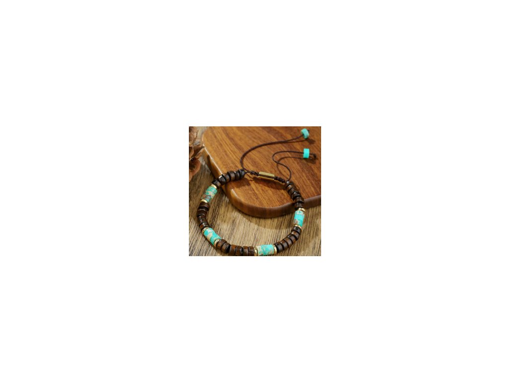Pánský etnický náramek z dřeva a tyrkysového kamene